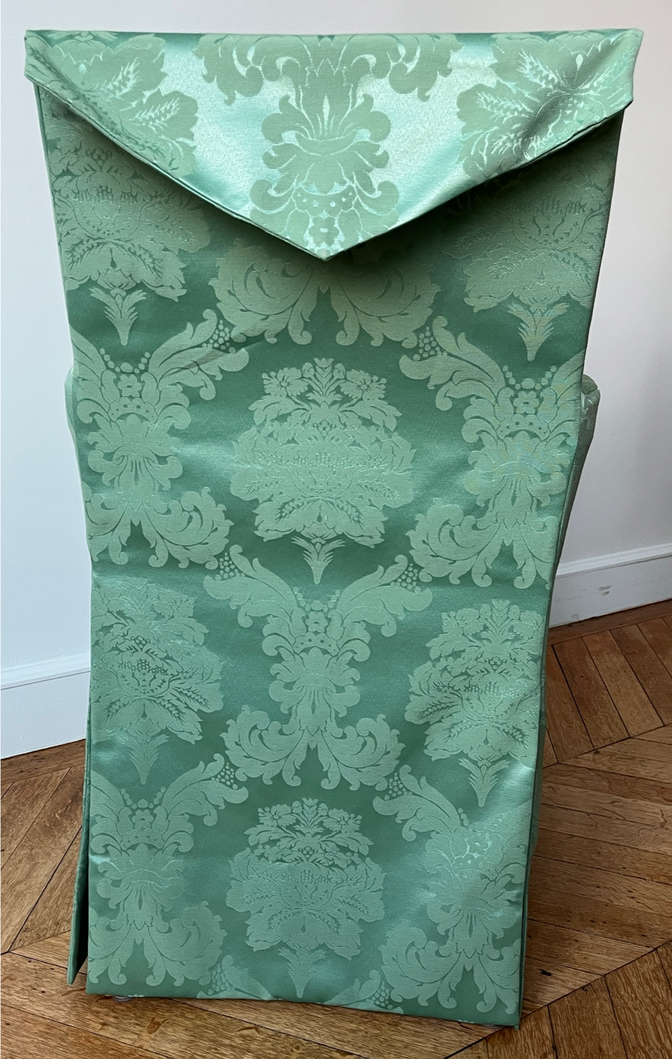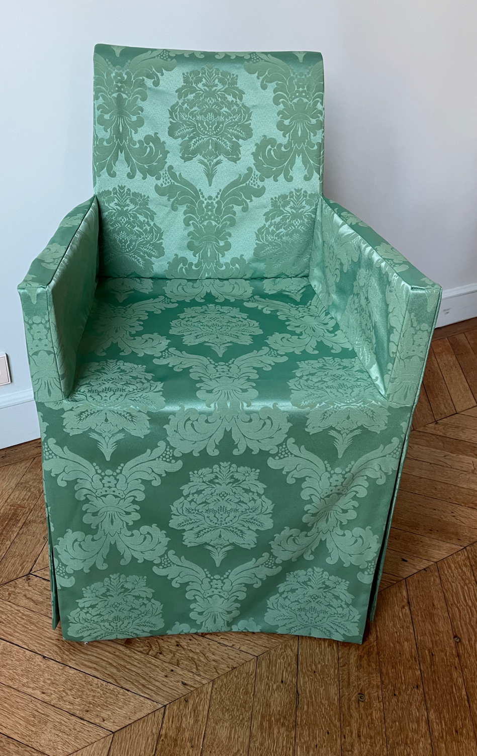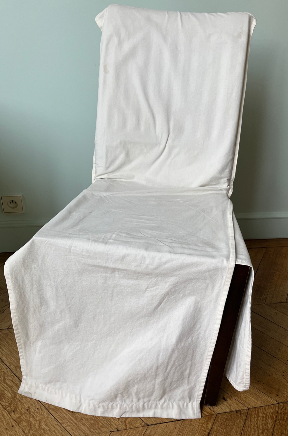 Nouvelles housses sur mesure pour chaises de salle à manger dans un appartement des années 1840, à Paris 4ème