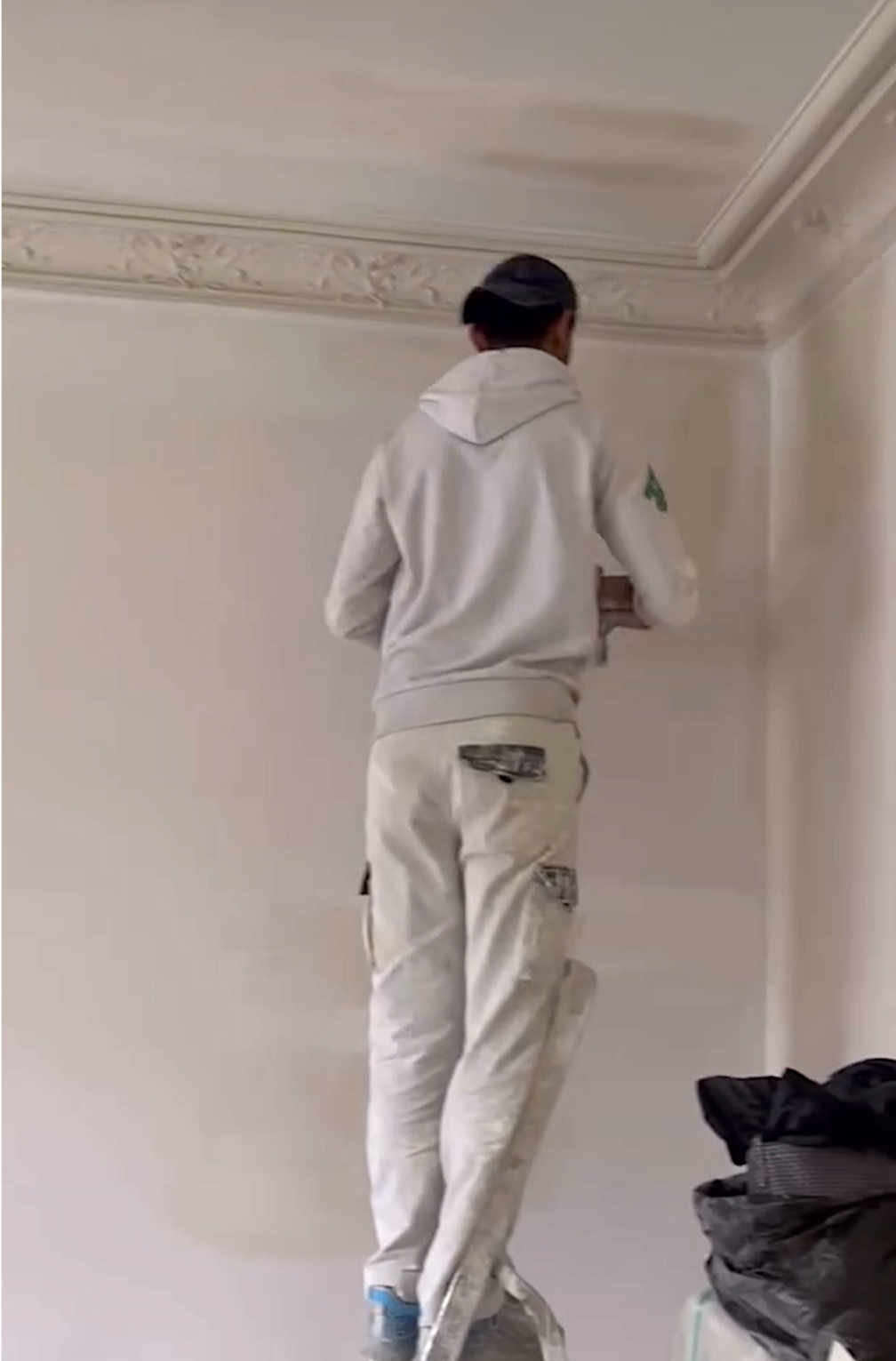 Sumner Hargrove inspecte les travaux préparatoires de plâtrerie dans un appartement des années 1840, Paris 4ème